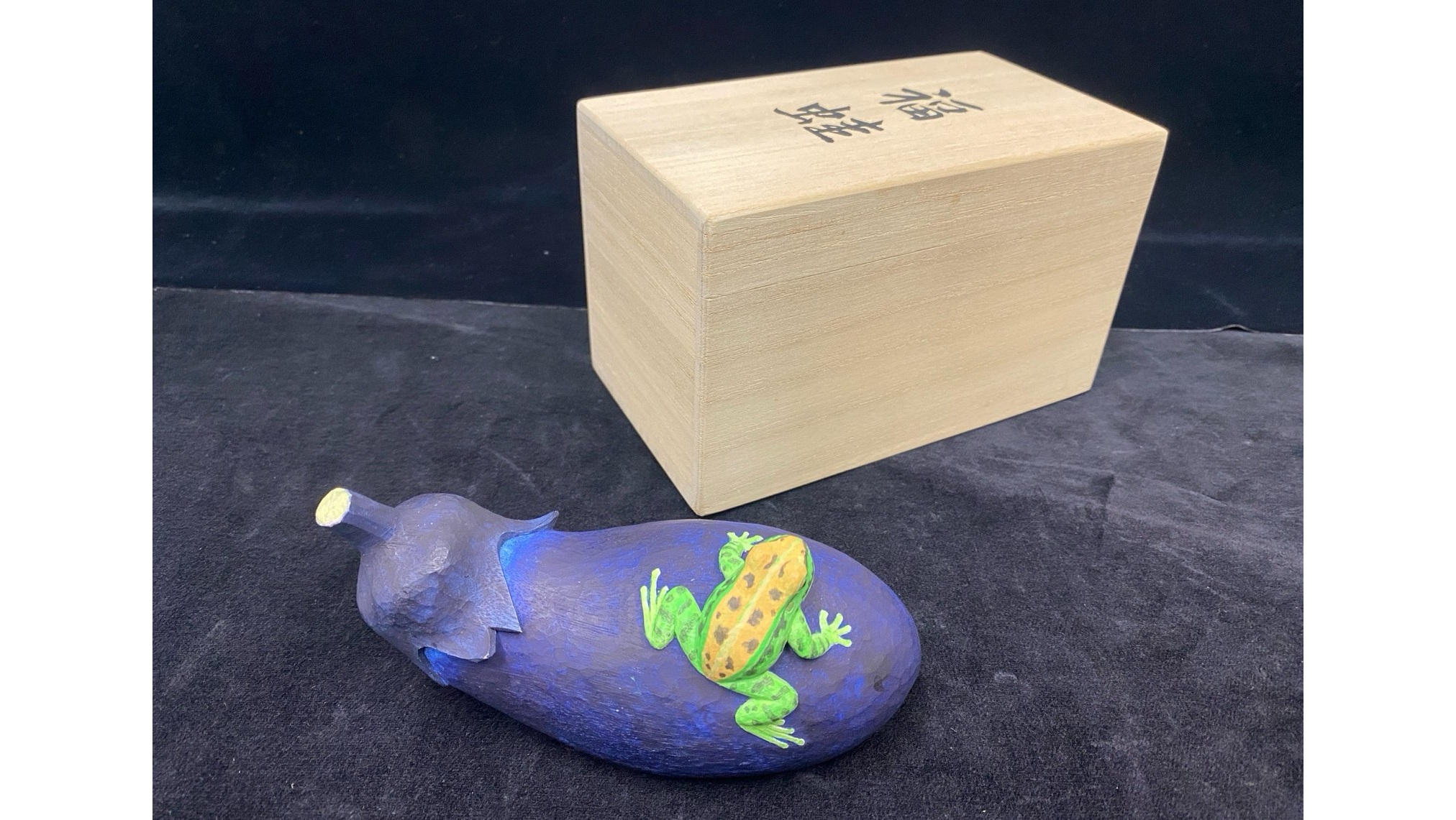 このたび岡山県のお客様より五野上功の木彫作品「福蛙」をお買取りいたしました。