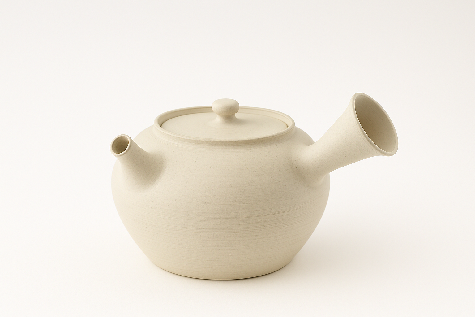 煎茶道におけるボーフラの最大の特徴は、急須との明確な機能的区別にあります。急須には茶葉を漉すための網や穴が複数ありますが、ボーフラは注ぎ口の穴が一つだけで、内側に漉し穴がありません。これは茶葉を直接入れることなく、純粋にお湯を沸かすことに特化した設計であり、茶道の釜とは異なる独自の発展を遂げた煎茶道ならではの道具です。素焼きの白泥(はくでい)で作られることが多く、金気を嫌う煎茶道の思想に基づき、お湯の味をまろやかに仕上げる重要な役割を担っています。