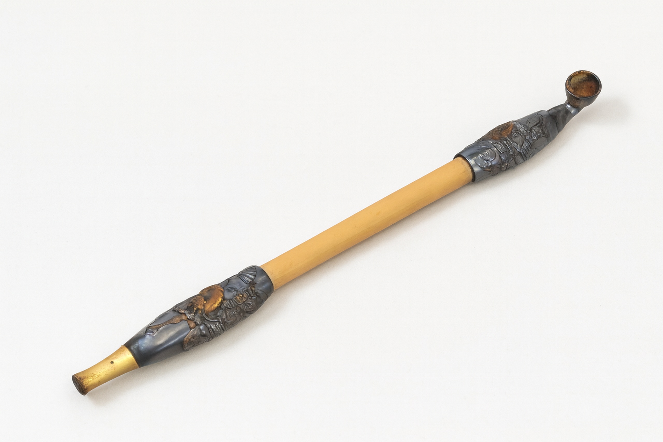 使用される素材は実に多彩で、金・銀・銅・真鍮・鉄などの金属類から、竹・木・陶器・ガラス・石まで多岐にわたります。特に江戸後期から明治にかけては、蒔絵・象嵌・彫金・線彫り・鋤彫りなど高度な装飾技法が用いられ、単なる喫煙具を超えた芸術品として発達しました。