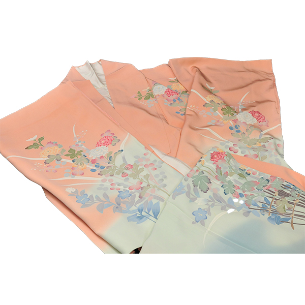 訪問着 絵羽模様が特徴的で、一枚の絵のように柄がつながっています。最も汎用性が高い礼装着物として人気です。